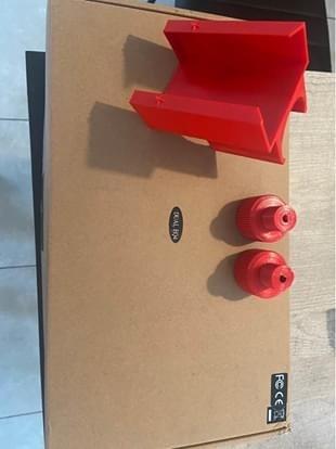 Avec il y a quatre piles neuves dans le boîtier de commande type alcaline basique. J’ai aussi imprimer en 3D deux molette pour la monture Ainsi qu’un support pour la raquette de commande.