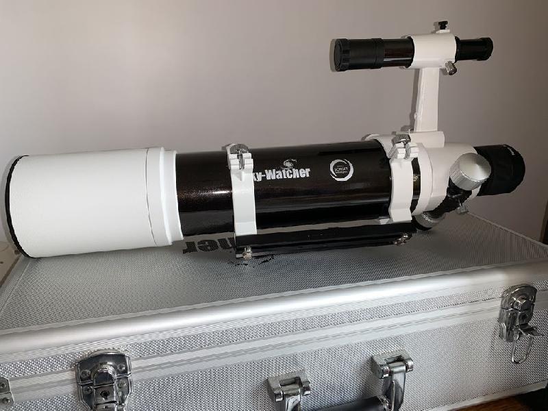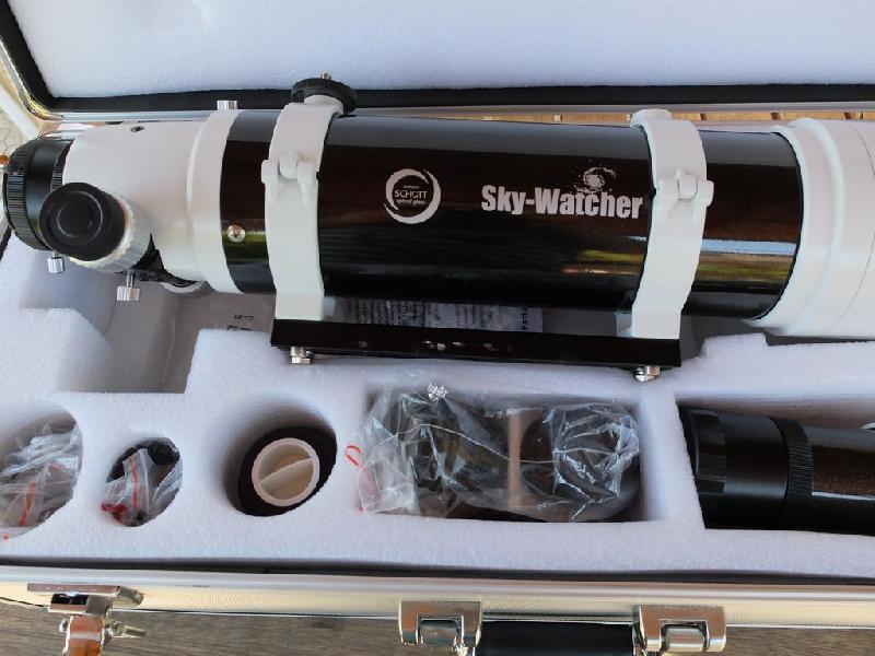 Lunette Sky-Watcher 80ED apochromatique dual speed avec valise et accessoires en très bon état.