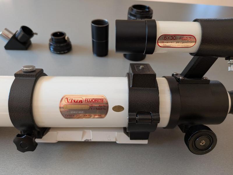Vends une rare et très réputée lunette apo Vixen fluorite FL70S en bon état, optique nickel avec plusieurs accessoires.