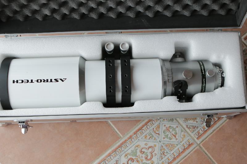 Lunette Astro-Tech 111/777 EDT Triplet, Crayford 2,7 pouces, en tres bon etat valise Allu, avec colliers.