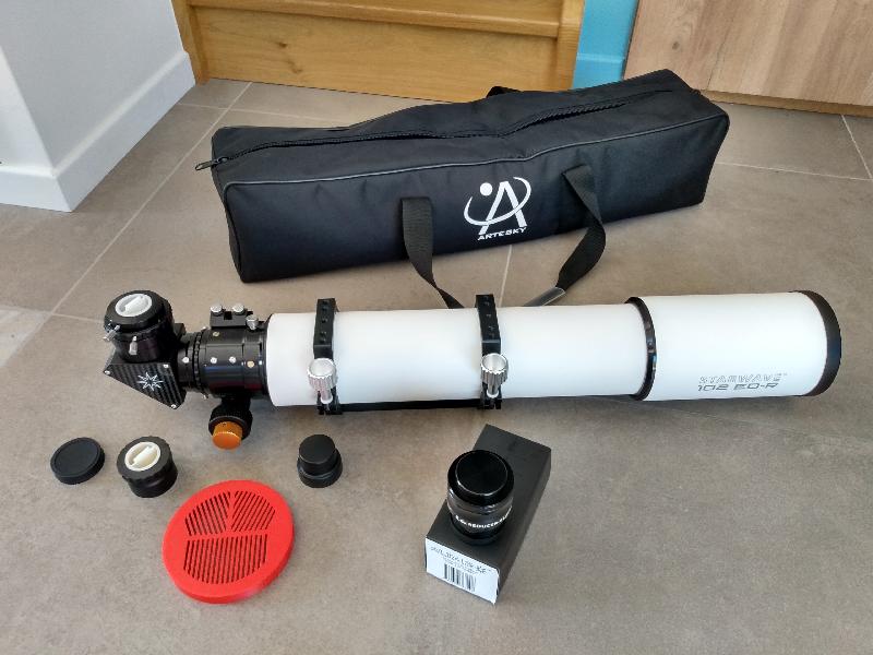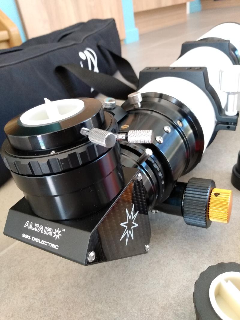 La lunette est vendue avec un correcteur Lightwave 0.6x en 2’’ (jamais monté) , un renvoi coudé 2" Dielectric Altair Premium, un masque de Bathinov et une housse de transport ARTESKY.
