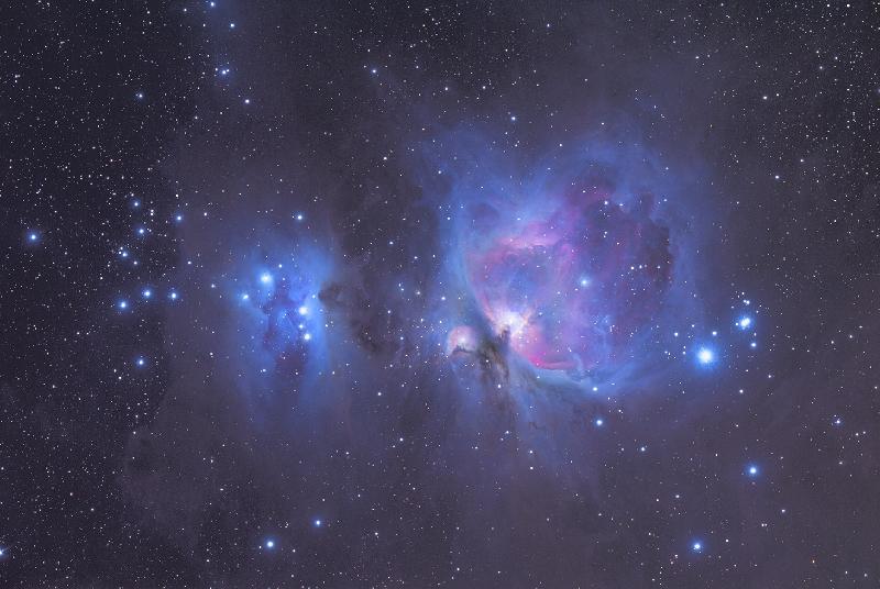 M42 a été prise en photo avec un simple réflex non défiltré par pauses de 3minutes à 1600isos pour 3h30 de pauses totales et je suis nul en traitement d'images...