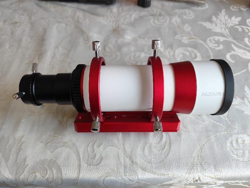 Elle dispose d'une queue d'aronde vixen/ARCA et un porte oculaires à serrage annulaire avec 2 allonges possibles (17mm+18mm).