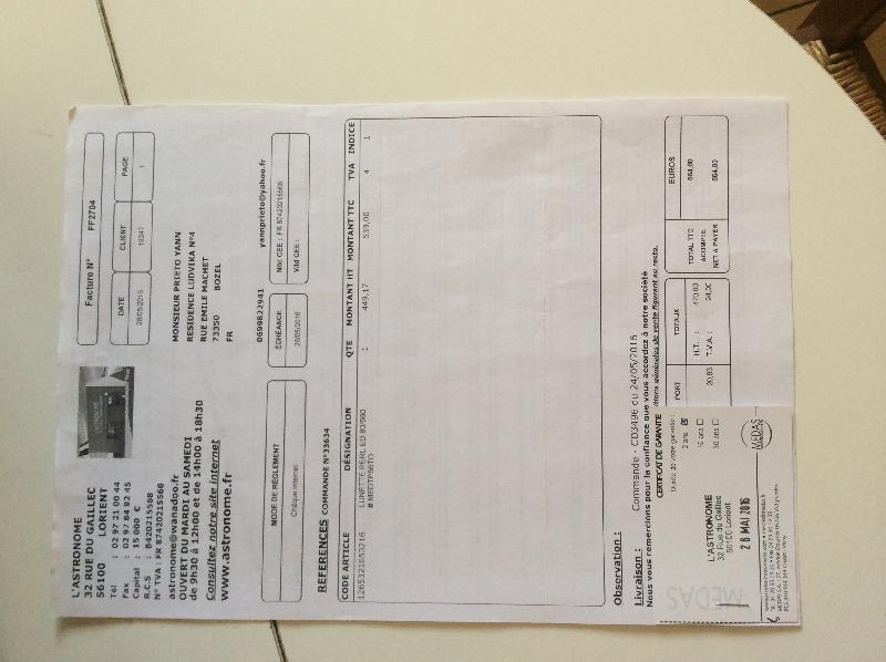 Tres bon état, acheté en 2016 chez l'Astronome.