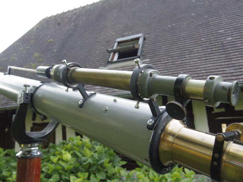 entièrement restaurée. (Certains ont pu la voir au RAP ).Elle est complete avec sa monture son coffret d'oculaire et son renvoi coudé d'origine + un renvoi 45 au format 31.75 pour pouvoir utilise des oculaires actuels. l'ensemble est parfaitement fonctionnel avec son chercheur réticulé. Epoque années 1930 N° serie 3742 . tube aluminium (le carbone de l'époque) et colonne en celoron (un des premiers composites).