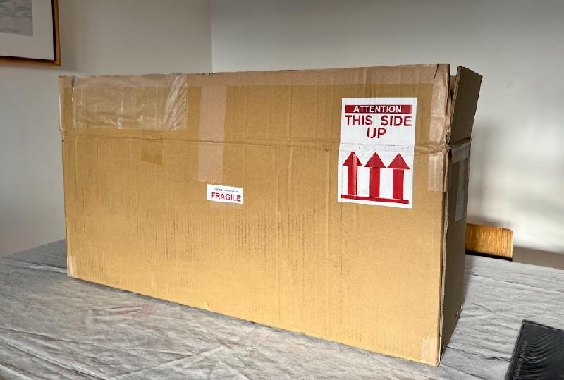 En cas d’envoi, elle sera livrée dans le carton visible sur la derniere photo, avec un emballage soigné.