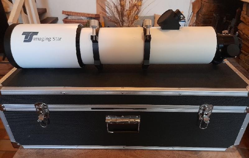 Lunette TS Optics AP 130/650 f5 Imaging star triplet en très bon état vendu avec un renvoi d'angle pour le visuel.