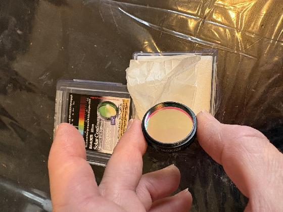 Vends un filtre Baader continuum 1.25", indispensable pour améliorer le contraste. Il facilite l'observation des taches, facules et la granularité de surface de l'astre en réduisant fortement les effets de la turbulence atmosphérique. C'est un outil redoutable et indispensable pour les observations du soleil en lumière blanche.