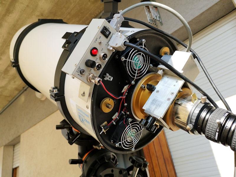 Le tube est en fibre, le poids des accessoires est de 32 kg, les dimensions OTA 85 x 35 cm sont présentes avec trois ventilateurs et une unité de contrôle 12V pour la gestion électronique ( ventilateurs, accessoires divers).