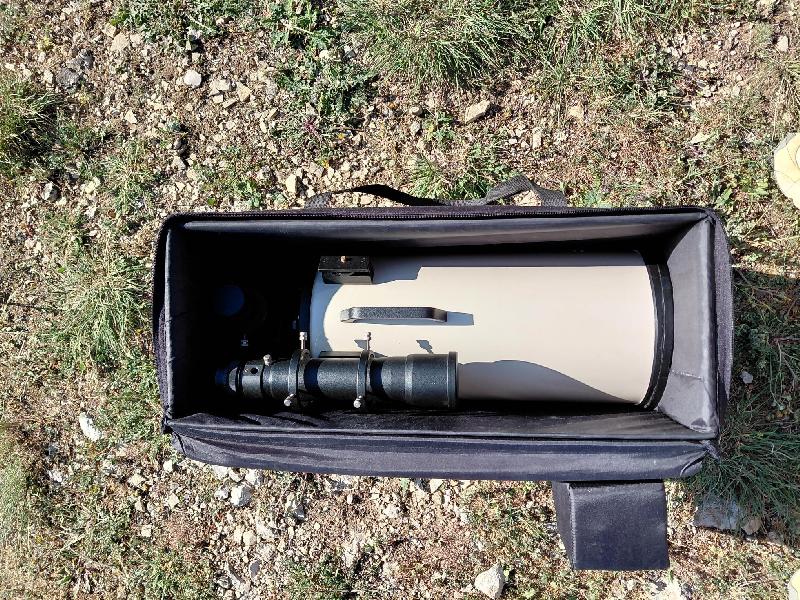 Vends tube optique Maksutov Cassegrain Intes Micro Alter M615 : diamètre 152mm, F/15 (focale 2280mm) : très bon état avec chercheur droit réticulé (a priori 8x50), renvoi coudé, oculaire Plössl Orion 25mm, sac de transport.