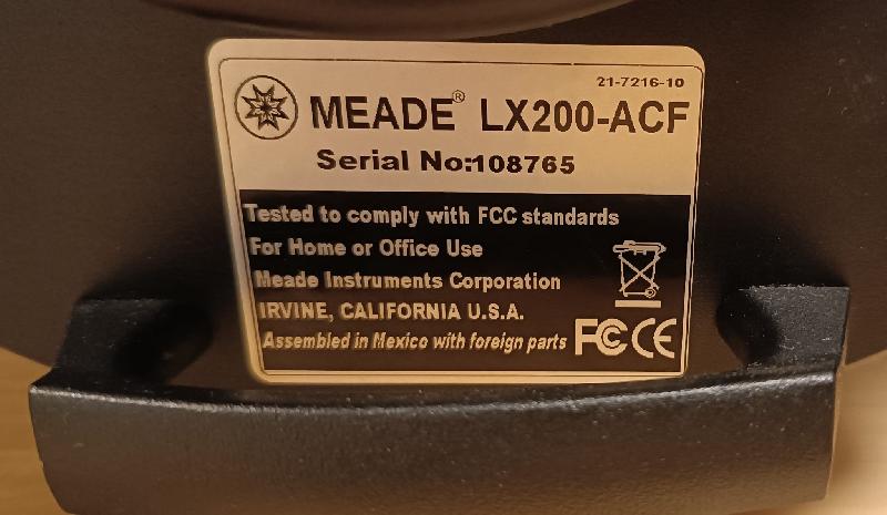 OTA série Meade LX200 avec optique aplanatique avec un diamètre d'ouverture de 10" (254 mm) ACF (Advanced Coma Free), distance focale 2500 mm rapport F/10 avec traitement multicouche Meade UHTC. Bob's Knobs, 2 bases de recherche, barre Losmandy, interne diaphragmes. Excellent état.