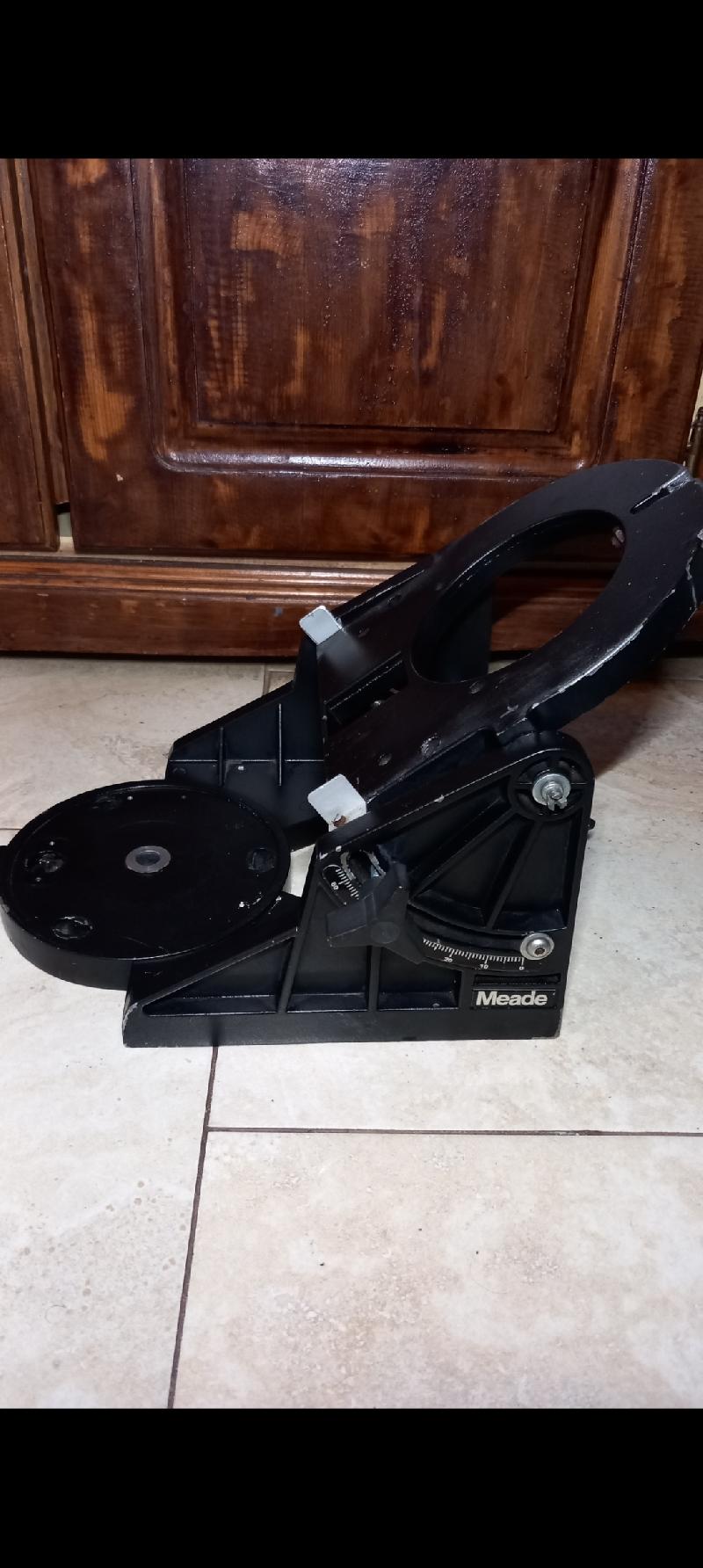 Base équatoriale de marque Meade, super stable, bien lourd en fonte d'aluminium, ( un aimant ne s'y colle pas????) made in USA de 1995.