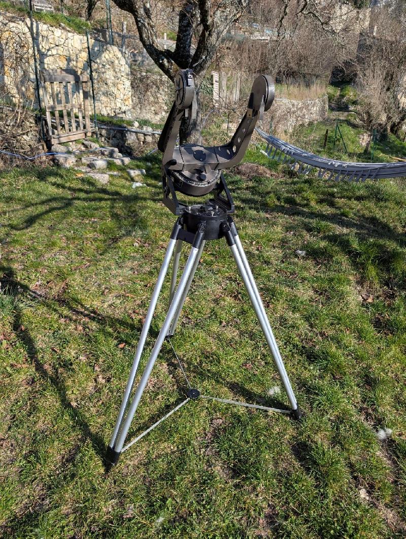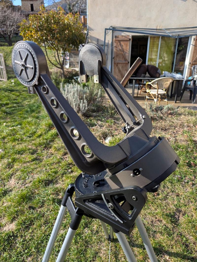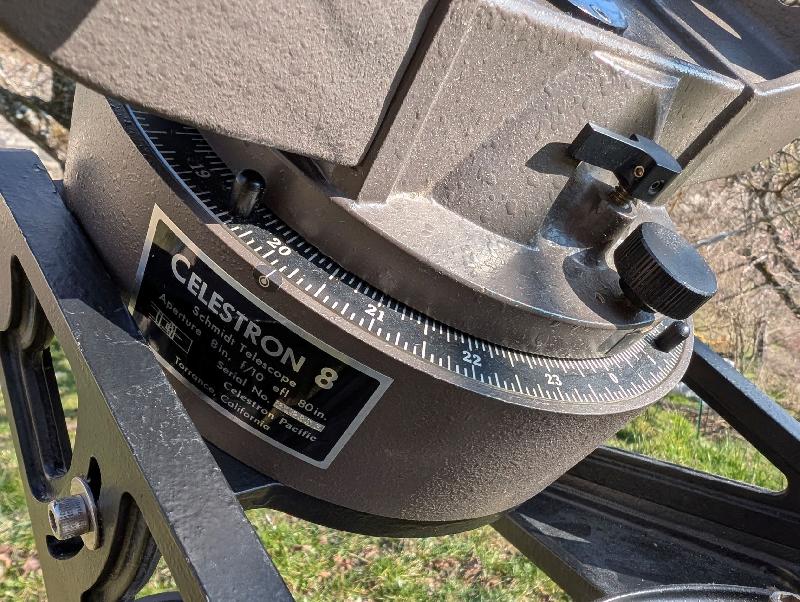 Je vends au plus offrant une monture à fourche Celestron C8 vintage (fabriquée en Californie, probablement du début des années 80), en très bon état et entièrement fonctionnelle.