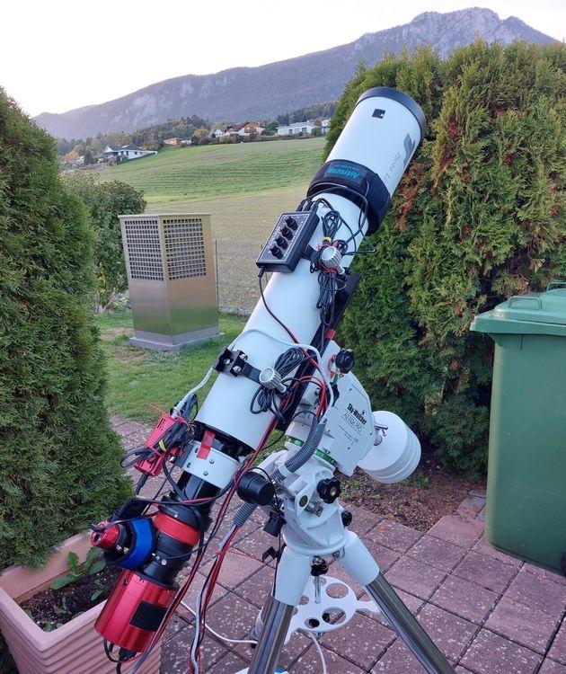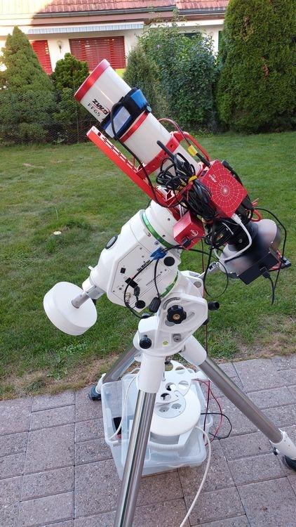 L'AZ-EQ6 (photo) a été acheté neuf en 07/21 chez Teleskopservice (TS) et a été soumis auparavant à un test de fonctionnement (sans problème). Il est en bon état, fonctionne également de mon point de vue parfaitement et ne présente que des traces d'utilisation minimales. Associé à ma commande astro ASIAIR (carte des étoiles, planification des prises de vue, alignement polaire, mise au point automatique, Meridian Flip, etc.), l'astrophotographie devient facile. Les deux objets astro ont été pris récemment avec mon réfracteur 65 mm / f6.4 (image, IC 1396) et mon réfracteur 115 mm / f7 (image, NGC 6960).