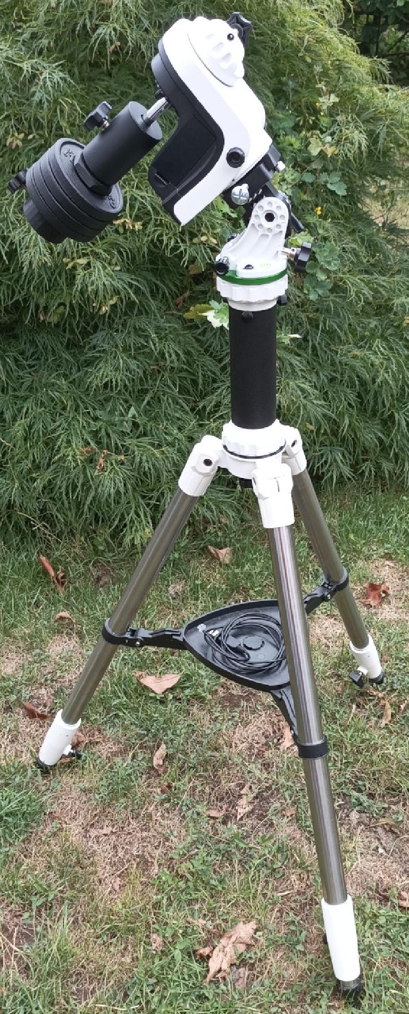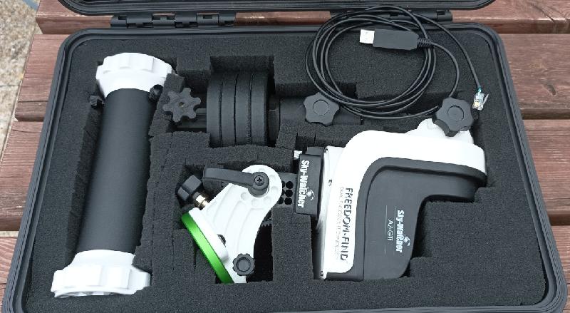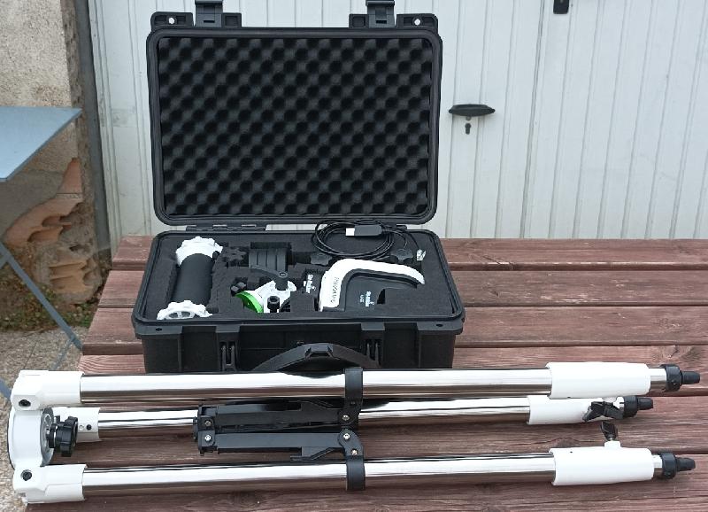 Pour cause de changement de matériel, je vends ma monture Skywatcher AZ-GTI Goto Wifi. C’est une monture alt-azimutale motorisée sur les deux axes. De nombreux accessoires sont compris :