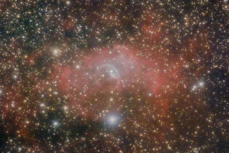 L'image jointe de la nébuleuse de la Bulle a nécessité 270 images de 90 s de pose. Les deux autres images ont résulté chacune de 2 heures de pose. Les images ont été prises avec un Canon full Frame 5D III défiltré.