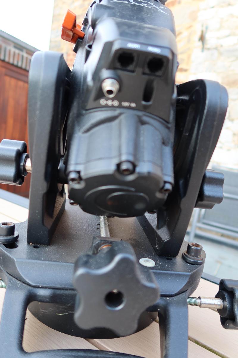 Suite problème de santé, je dois me dessaisir de ma monture Célestron CGX. Livrée avec trépied d'origine (un trépied lourd de la CGX-L est vendu séparément) raquette Nexstar + d'origine et une raquette de réserve. Alimentation 12 V de 5 A ou plus à prévoir. La monture est équipée de 2 prises auxiliaires (Raquette et accessoire éventuel) , d'une prise USB type B pour la connexion directe avec un pc et d'une prise ST4 pour l'autoguidage. Deux contrepoids de 5 kg.