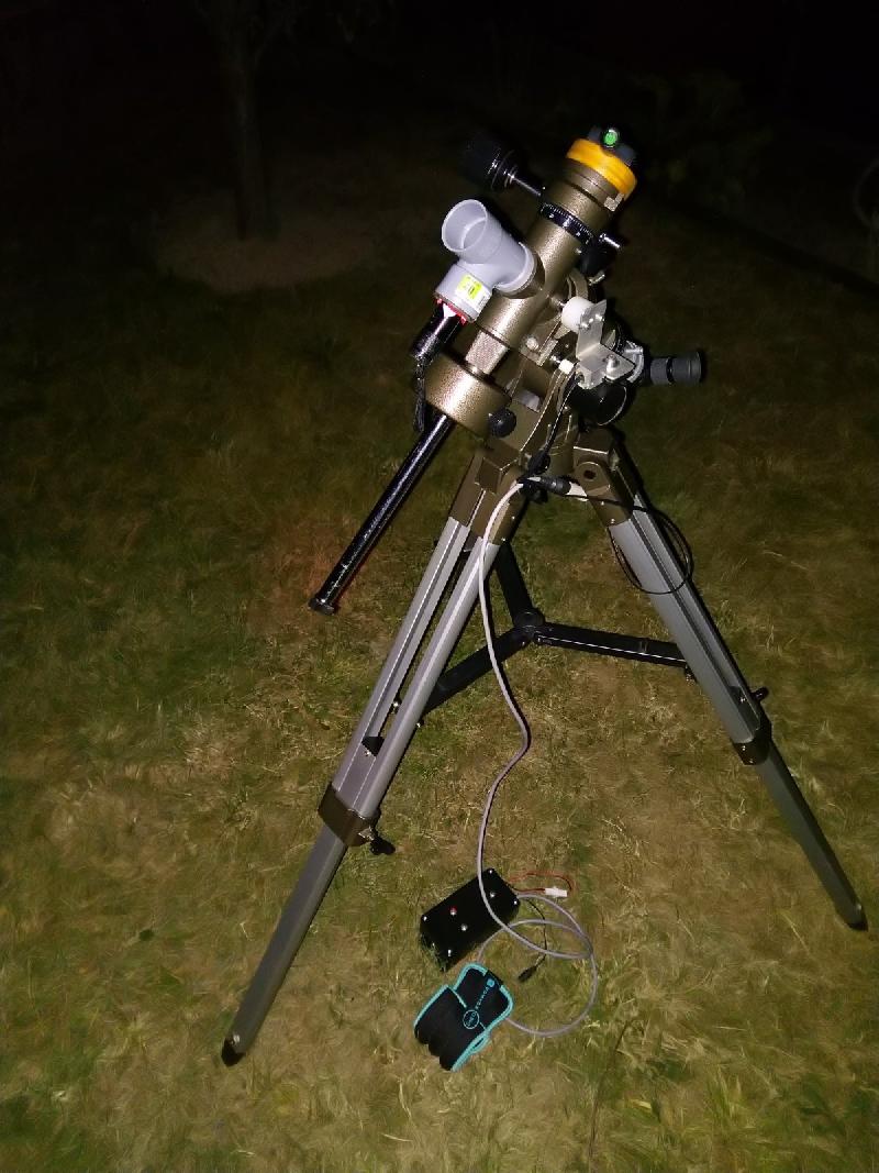 Je vends mon eq4 motorisé en AD, je change de projet. Je fournie la raquette, le trépied, la barre et le contre poid de 5Kg ainsi que sa tablette porte accessoire. Idéal pour commencer l'observation et l'astrophoto grand champ. Il y a aussi une batterie de 12v avec son chargeur avec une rallonge et une prise allume cigare.130€ à débattre.