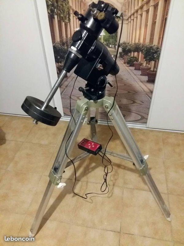 la monture fonctionne parfaitement. elle est vendu avec 2 contre poids de 5kg chacun. Et un convertisseur 12v vers 6v pour alimenter la raquette et les moteurs.