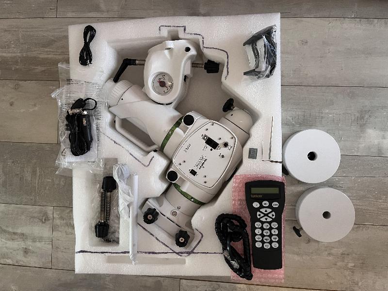 Monture Eq6 R Pro récemment achetée chez Equinox, la boutique d'astronomie à Lyon en juillet 2025 et est donc encore sous garantie avec facture à l'appui que je vous délivrerai le jour de la vente.