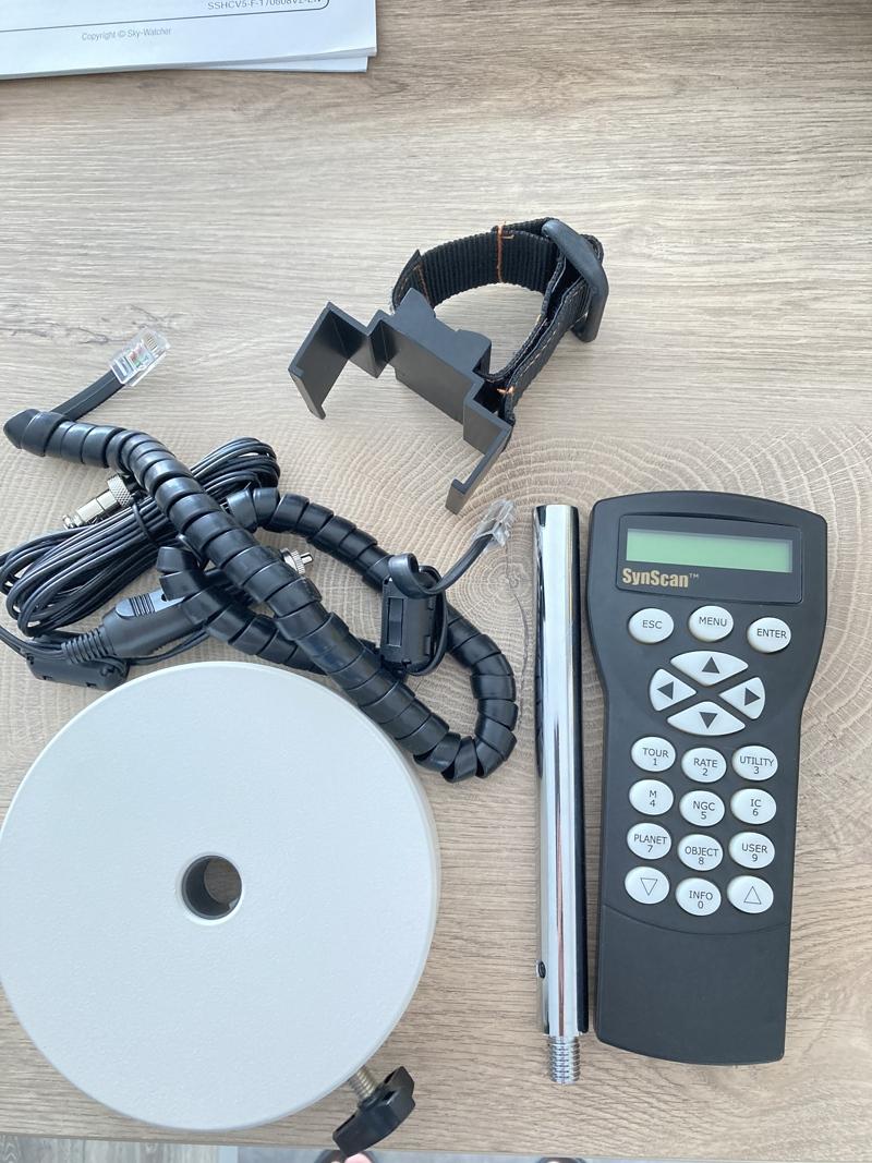 Elle dispose de la nouvelle carte électronique USB, du nouveau viseur polaire avec réticule fin et gradué et de la raquette SynScan V5.