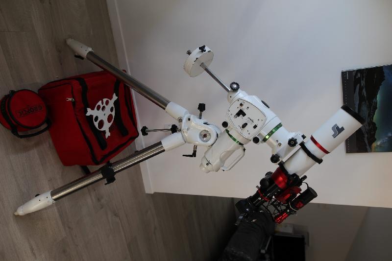 Fournis avec sacoche monture, sacoche contrepoids, le trépied, l'alimentation 10A ainsi que la raquette d'origine.