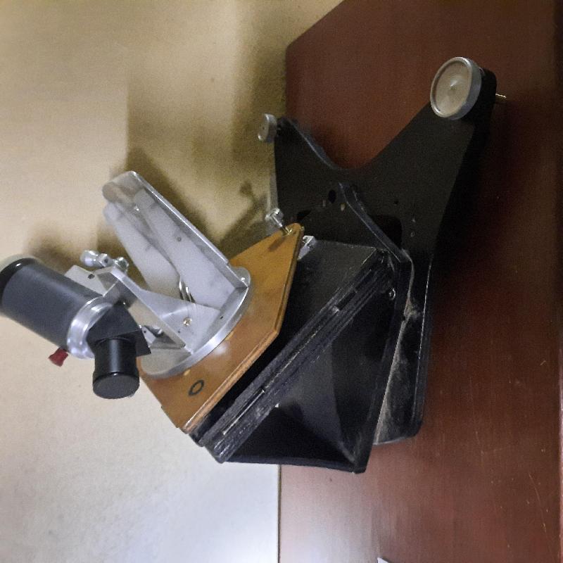 Petite mont. équatoriale en bois et Alu . Réglages latitude -asymut- latitude - mouvement horaire manuel par engrenage mécano - pièces aluminium dissociables et réglables avec lunette guide et emplacement pour app photo . . Bien sur sans prétention de rivaliser avec les magnifiques mont astro actuelles ,mais , peut être sympa pour les nostalgiques des années passées qui construisaient leurs appareils . Rens. supp. et phot . sur dema .