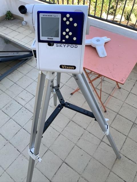 Vends une monture GOTO SkyPod Vixen (sans l’optique). Idéal pour débutant et petit budget. État correct (petite rayure sur écran principal) et fonctionne (piles et alimentation non fournie). Informations sur le site (http://www.company7.com/vixen/mounts/skypod.html). Vendu avec son trépied de table et téléscopique. Envoi possible (prévoir FDP selon destination).