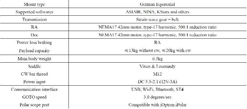 La monture fonctionne parfaitement et m'as donnée entièrement satisfaction. Elle est compatible avec le trépied TC40 de ZWO et facilement intégrer avec toutes les suites logiciels de pilotage pour l'astro photo.