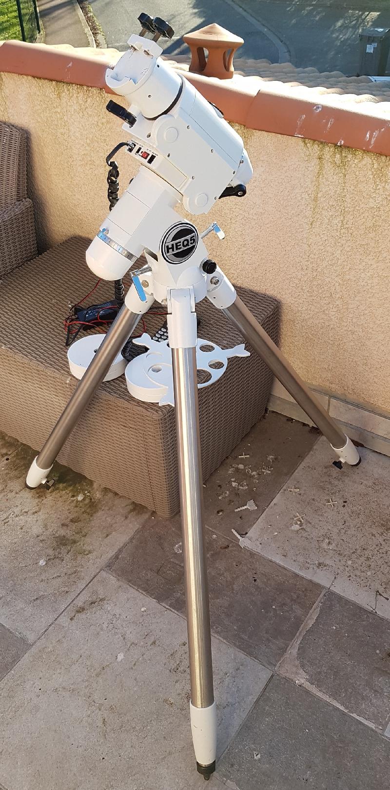 pour cause de doublon je vends ma monture HEQ5 PRO GOTO. Fonctionne parfaitement, vendue avec ses 2 contre-poids de 5kg, la raquette et l'alimentation.
