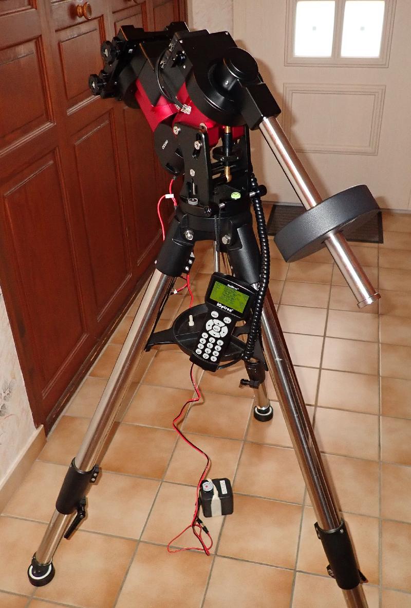 Monture IOPTRON CEM40 sur trépied LiteRoc avec IPolar, modules GPS et IStarFi WIFI. Raquette GO2 Nova 8407+ , contre poids de 5 kg.