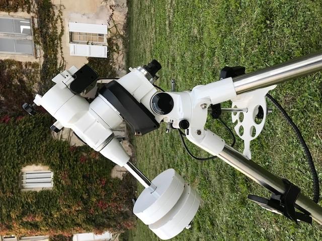 Bonjour, je vends mon NEQ5 Goto, achetée neuve en juillet 2017. Inclus trépied avec tablette, 2 contrepoids de 5 kg, viseur polaire (nouveau réticule) centré /molettes de réglages à la place des vis, câble d'alimentation allume-cigare. Boîtier électronique changé en mars 2020. Je la vends avec une raquette Synscan qui n'est pas la dernière génération, mais qui fait très bien le boulot, et avec le module Synscan wi-fi pour contrôler la monture d'un smartphone ou tablette, plus pratique que la raquette. A voir sur secteur sud Lot-et-Garonne, je peux me déplacer sur Agen et alentours.