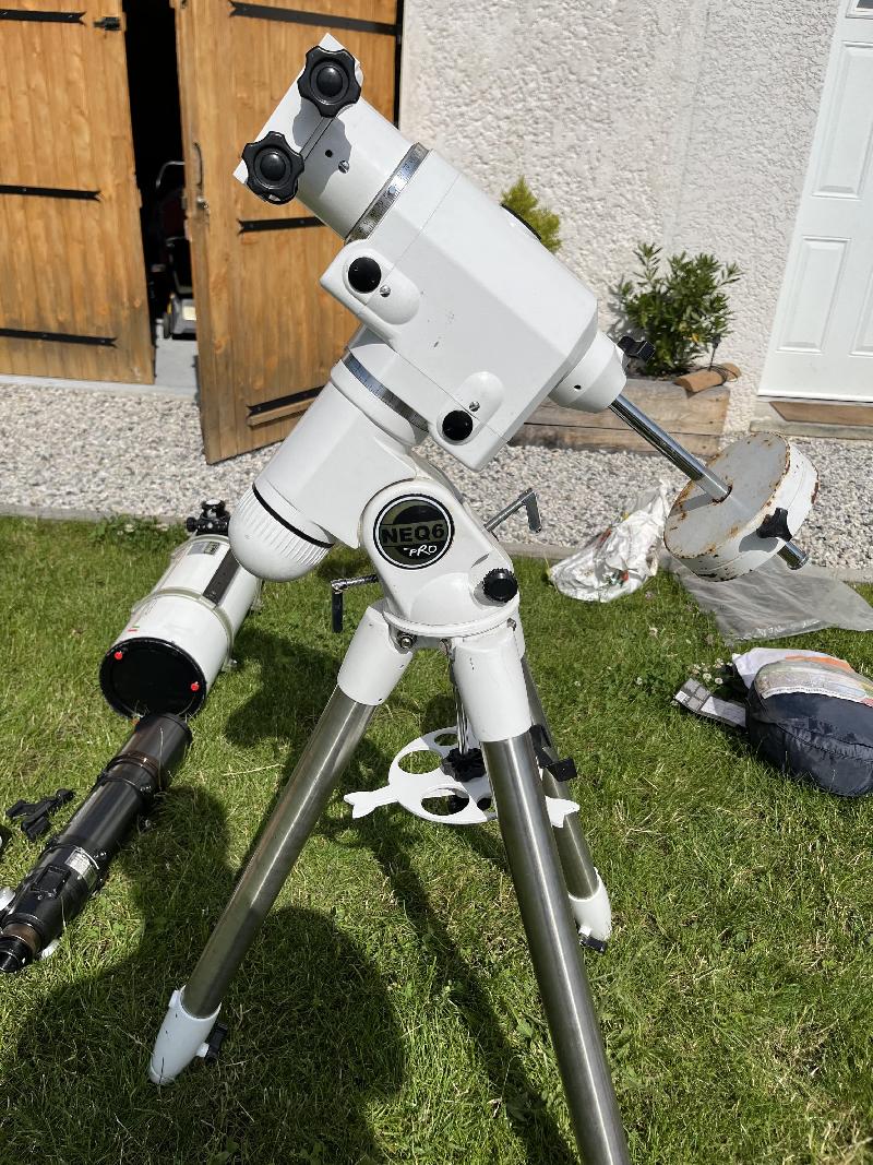 Je vends une monture NEQ6 pro avec 2 contres poids et tout son équipement (télécommande + câble d'alimentation etc..)