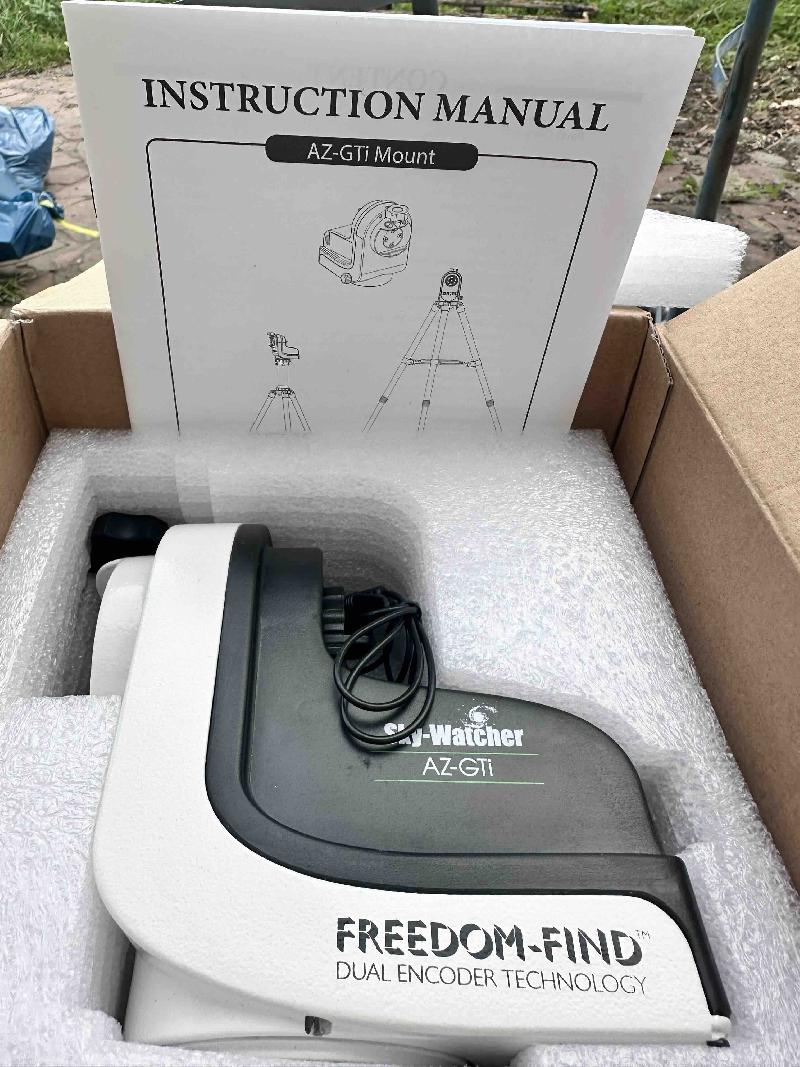 L'AZ-GTi est équipée de la technologie d'encodage brevetée FreedomFind (regardez les photos c'est marqué dessus!) . Grâce à cette technique, la monture ne perdra pas son orientation même si vous déplacez l'optique à la main. Ainsi, vous pouvez faire manuellement de grands mouvements et un réglage fin à la main. C'est rapide et permet d'économiser de l'énergie électrique.