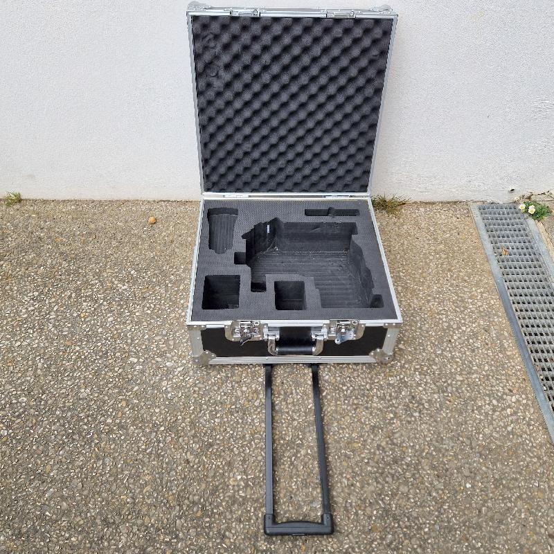 Valise rigide type Fly-case à roulettes très solide possible 150 € en sus.