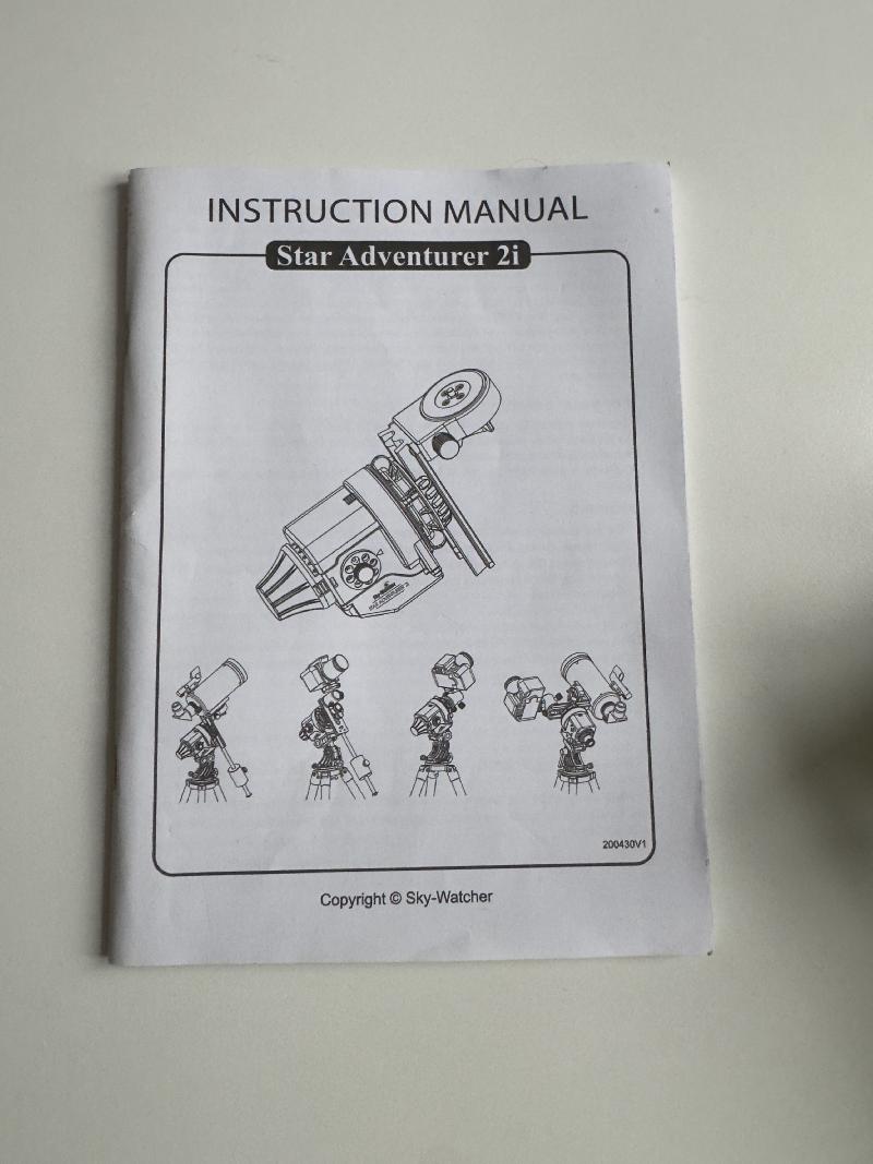 Monture Sky-Watcher Star Adventurer 2i WiFi (package complet) en bon état général. Cependant, le capuchon du viseur polaire a une encoche cassée (voir photo). La platine L a des marques d'usure. Le package comprend :