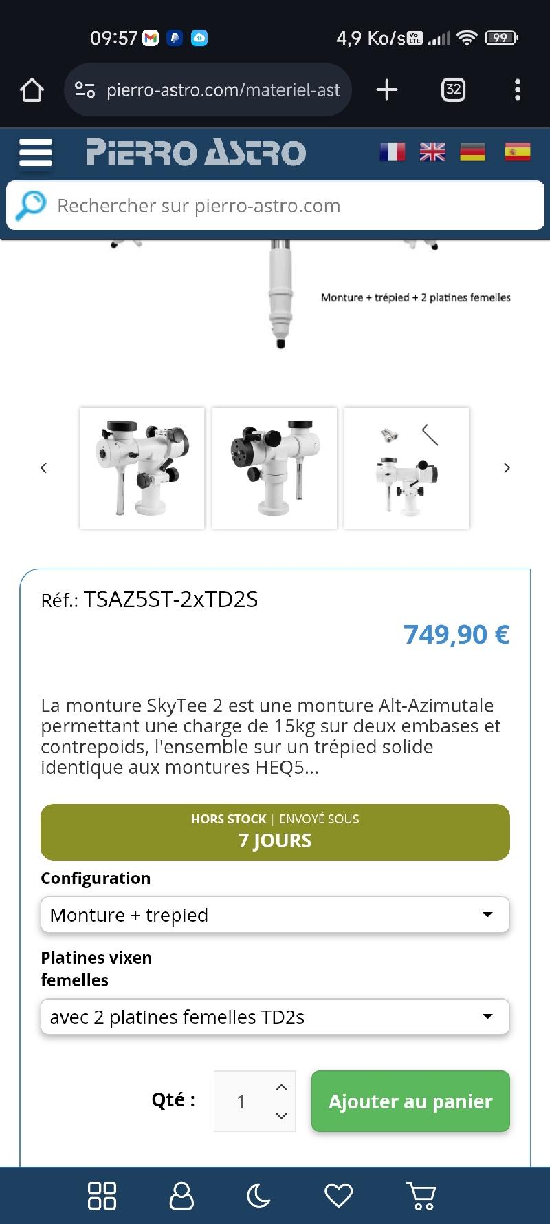 Monture Skytee 2 + Onstep (Goto)+ accessoires