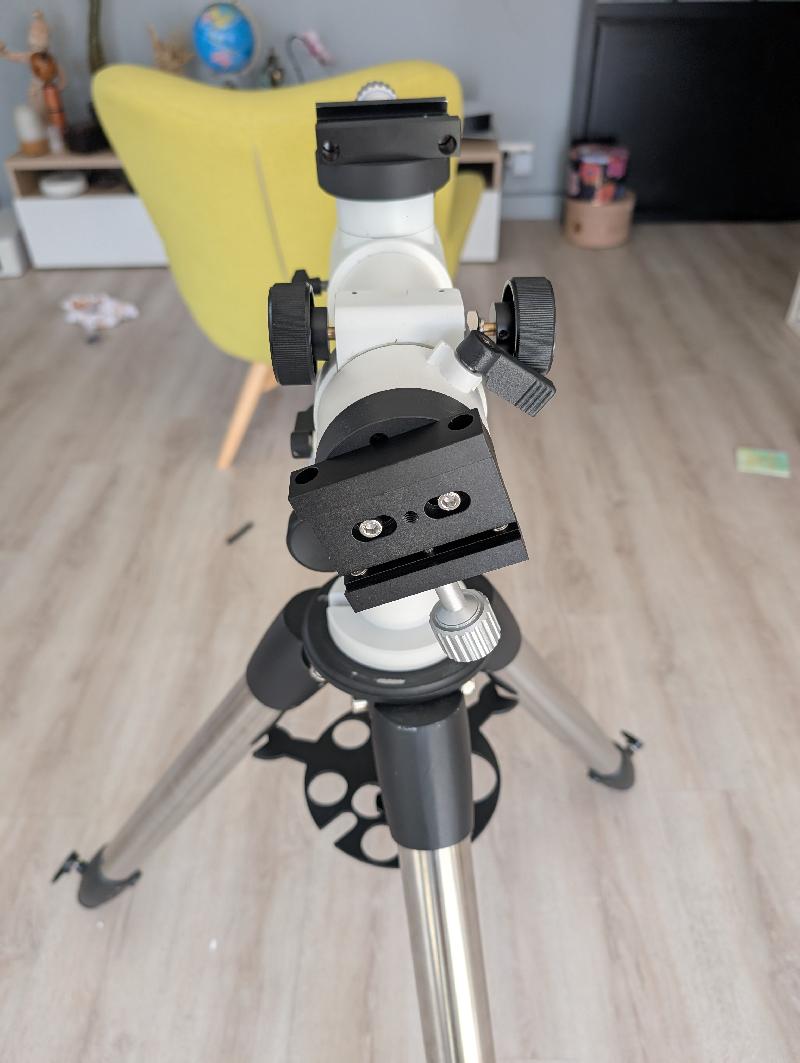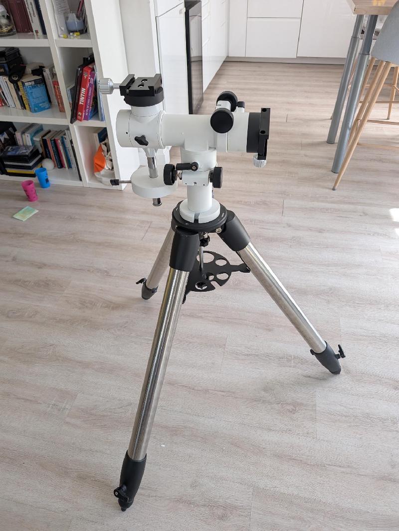 Attention LE TREPIED visible sur la photo N'EST PAS FOURNI. Elle est compatible avec de nombreux trépieds du marché Sky-Watcher, Vixen, Celestron, Meade, etc...