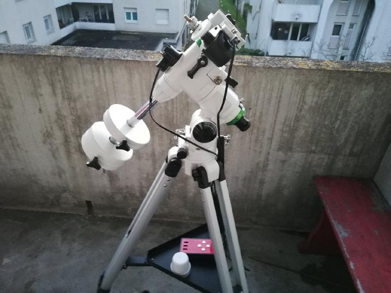 Vend monture équatorial Skywatcher EQ3-2, motorisé sur les deux axes. Acheté en mai 2019 (facture à l'appui), cette monture peut supporter une charge allant jusqu'à 5,5kg. D'origine "nue", elle a par la suite été équipé d'un viseur polaire, d'un éclairage pour ce dernier et d'une motorisation sur les deux axes. Cette monture à été utilisé avec un tube 150/750 (~5kg) pour du visuel et de l'astrophoto. Toutes les factures sont en ma possession et le tout est vendu rangé dans son carton d'origine.