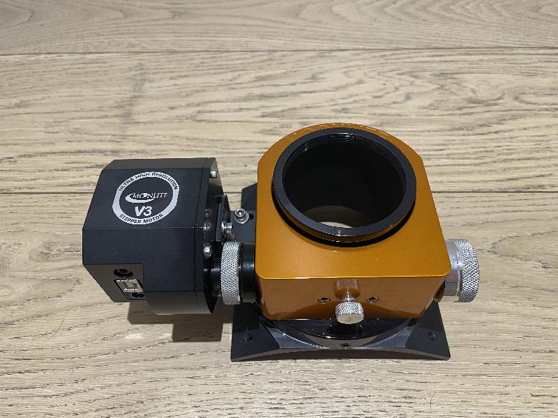 Je vends un porte-oculaire Moonlite CLR2.5, parfaitement adapté aux objectifs Epsilon 160 et 130. Il est extrêmement silencieux et précis, mais malheureusement, je ne peux pas le faire pivoter. Il est neuf et n'a jamais servi.