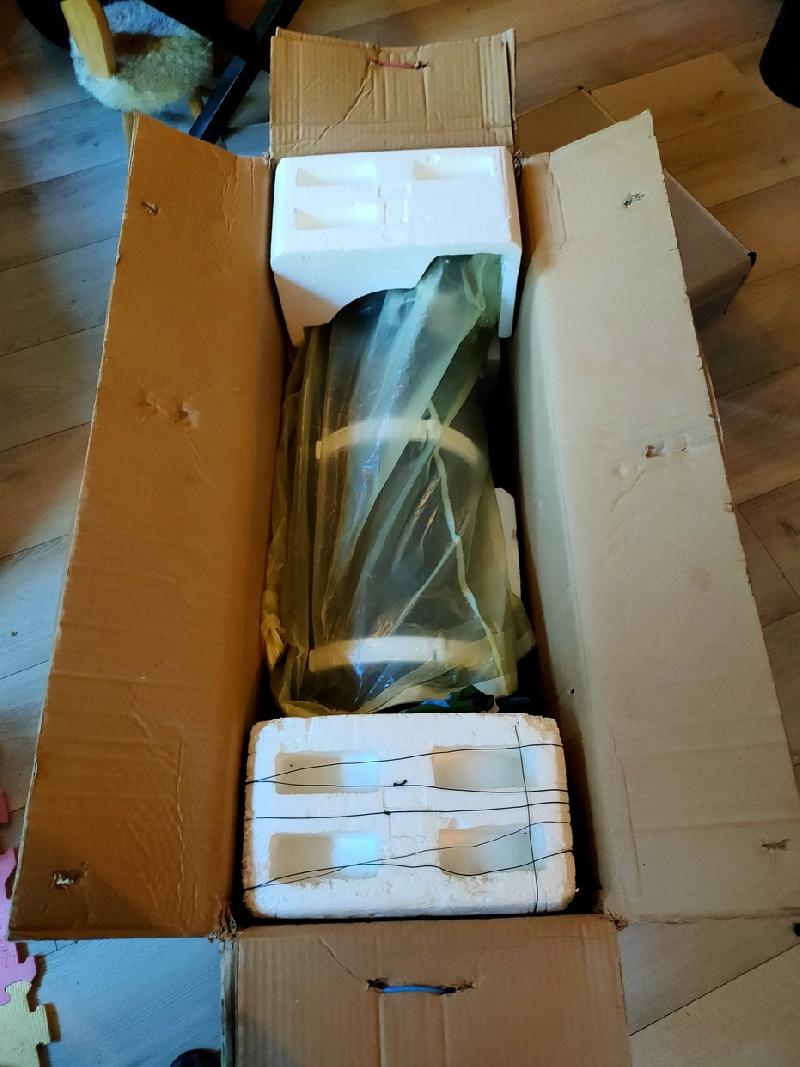 La monture a été réglée et graissée, le viseur polaire a également été réglé. Le télescope est collimaté, et si l'acheteur le souhaite je pourrai nettoyer le miroir avant la vente pour enlever les poussières mais cela n'est pas absolument nécessaire. Aucune rayure ou impact sur les aluminures.