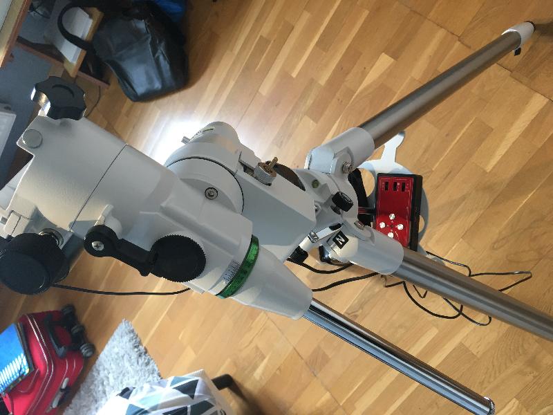 Suite à une évolution de setup, je vends une monture Neq5 de chez Skywatcher avec une motorisation sur les deux axes (AD et DEC), un viseur polaire Skywatcher ainsi que 2 contrepoids de 5kg chacun.