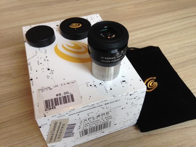 • Oculaire Explore Scientific 62° 5.5mm (acheté début juin 2020 chez Maison Astronomie, 89 EUR prix neuf) je demande 60 EUR;