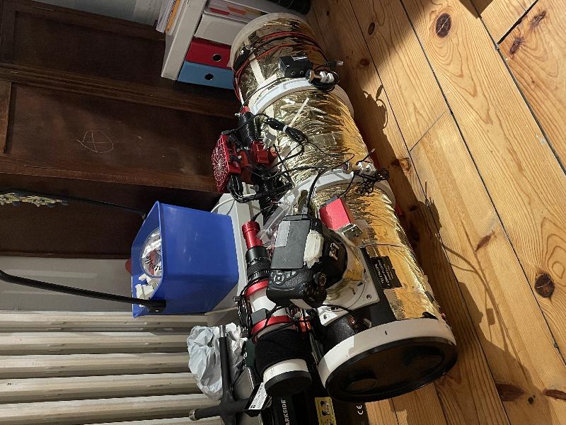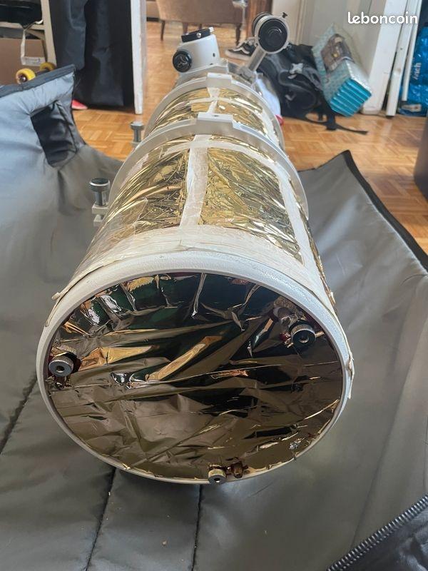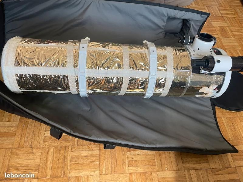 De base le tube est de couleur noir mais pour limiter l’apparition de buée et la dispersion thermique surtout en astrophoto, j’ai décidé de le couvrir entièrement de couverture de survie ainsi que de lui ajouter un pare buée.