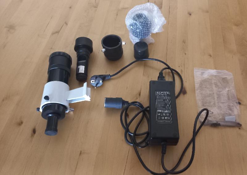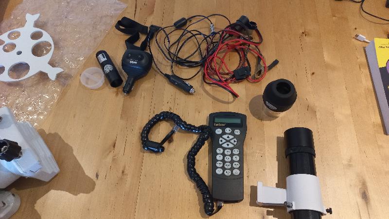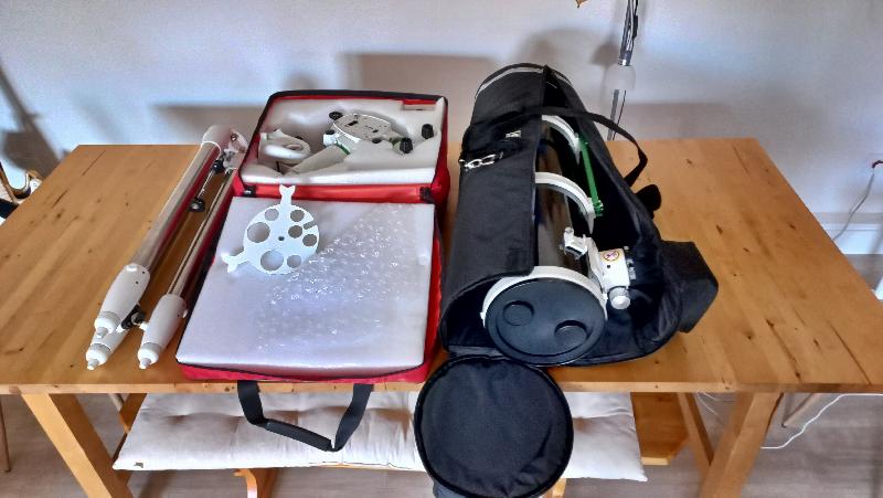 - Tube newton 200/1000 200PDS, Crayford 1:10, 1 oculaire LET 28mm, chercheur 9x50, masque de Bahtinov, laser pour la collimation, divers adaptateurs et extensions, correcteur de coma Kepler KE244 acheté 95€ et étui Oklop acheté 80€