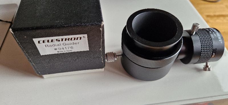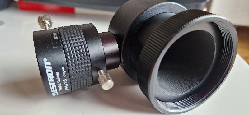 Diviseur optique Celestron pour autoguidage. Prisme de 10x10mm peut être tilté et ajusté en profondeur. Branchement femelle SCT et sortie en M42x0.75. Bague T2 vers Nikon incluse.