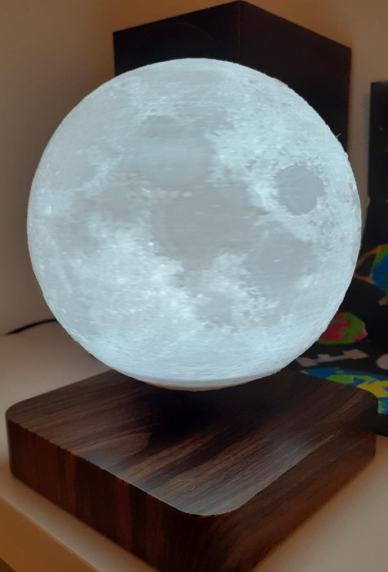 Globe Lunaire en relief, lumineux et tournant en lévitation.