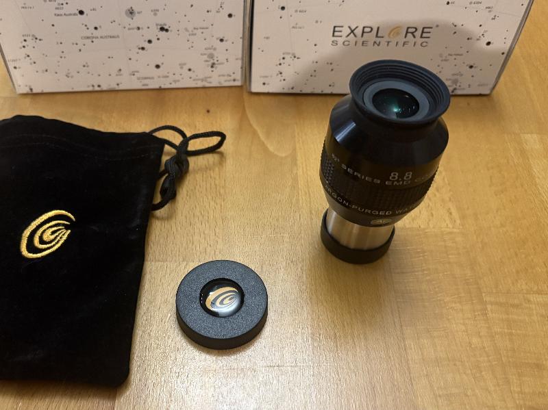 Je vend mon oculaire explore scientific 8.8mm 82° acheté en décembre 2024 en parfait état, je le remplace par un Morpheus 6.5mm car il ne grossit pas assez pour mon utilisation sur ma focale de 760mm