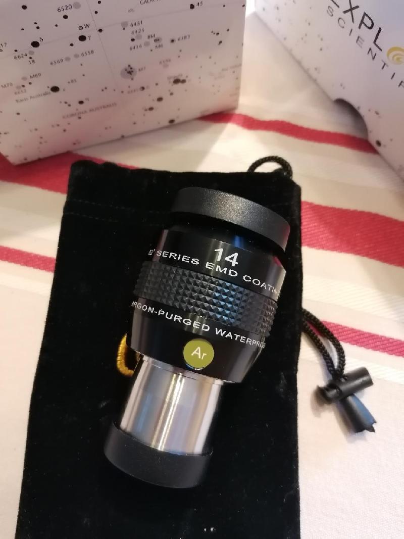 L'oculaire Explore Scientific de 14 mm est au coulant de 1.25" (31.75 mm).