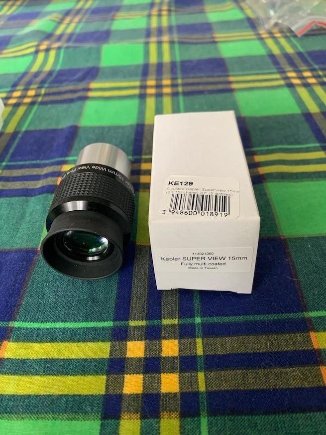 Oculaire Kepler Super View 15mm, 70°, de bonne qualité. Je le vend car le relief d'oeil ne me convient pas, ( 15mm), et mes lunettes me gênes...Il est pratiquement neuf, et ne m'a servit que 5 ou 6 fois. Le prix comprend le port.